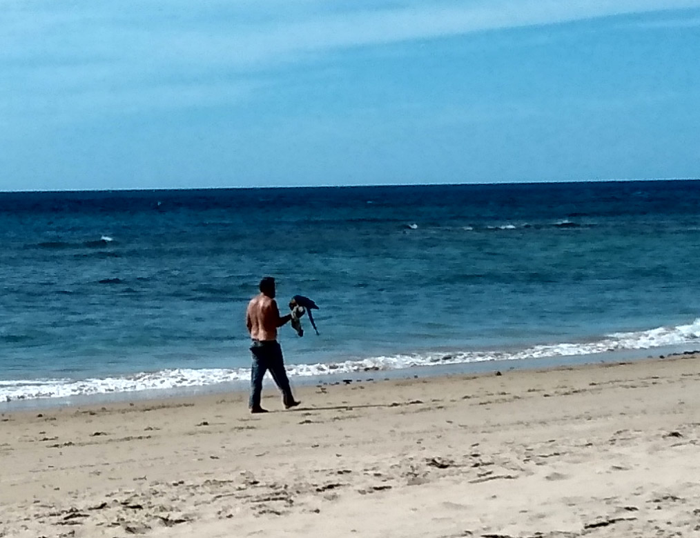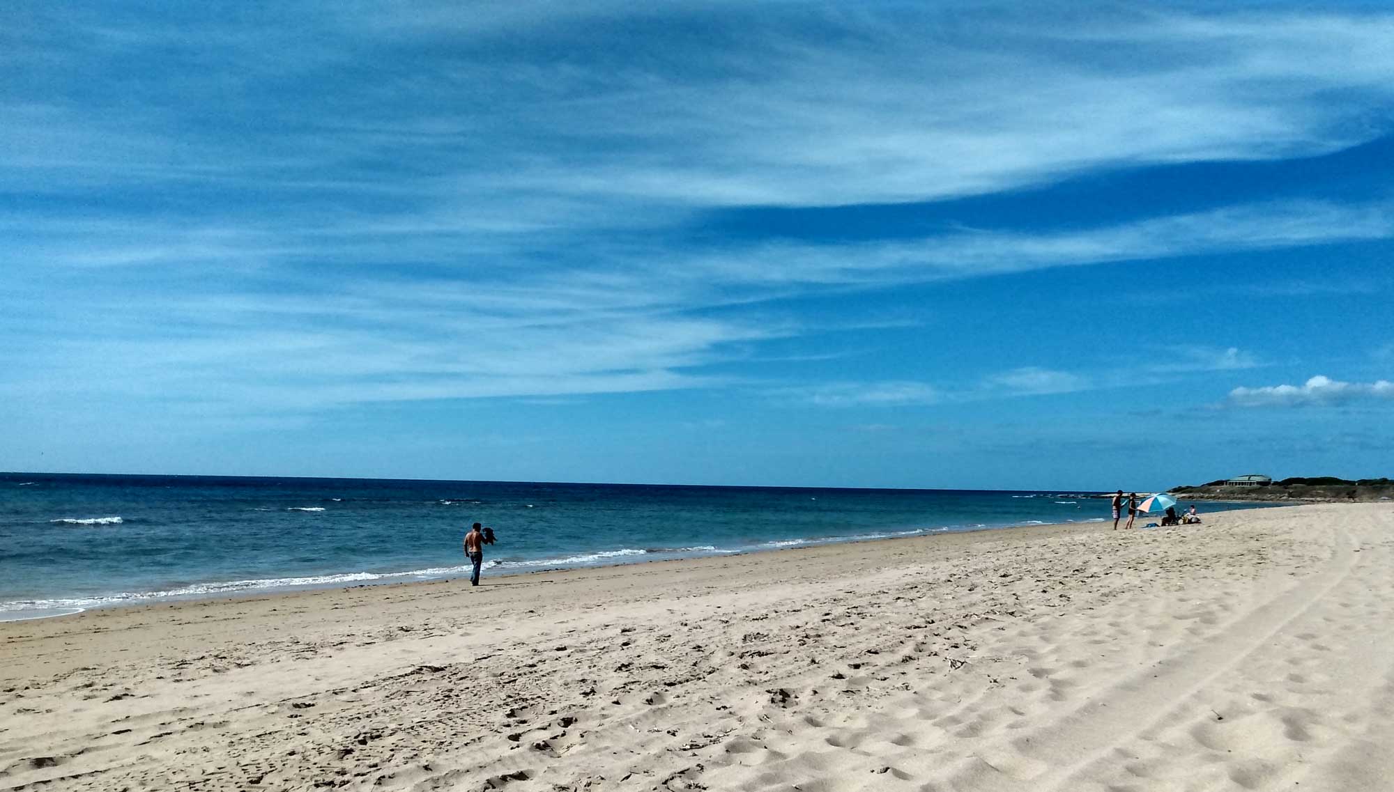 Die Musik störte überhaupt nicht und der Hahn hat entweder gar nicht oder sehr leise gekräht. Geweckt wurden wir trotzdem. Nämlich von nicht enden wollenden Schüssen einer wie auch immer gearteten Jagd. Es klang allerdings mehr nach einem ununterbrochenen Geballere. Es war allerdings auch schon 9 Uhr und so machten wir aus der Not eine Tugend, frühstückten und gingen an den Strand. Dort verbrachten wir den Tag, schließlich hatten wir für die Übernachtung ausnahmsweise mal bezahlt und die 24 Stunden wollten wir auch ausnutzen. Am späten Nachmittag fuhren wir dann etwa 20 km weiter nach Süden zu einem Freilichtmuseum, dem Fundación NMAC. Hier wird in bunkerähnlichen Gebäuden zeitgenössische Kunst ausgestellt und es gibt auch ein Freilichtmuseum. Das Museum hatte wie erwartet am Sonntag geschlossen, so dass wir den großen Parkplatz unter Pinien ganz für uns alleine hatten.