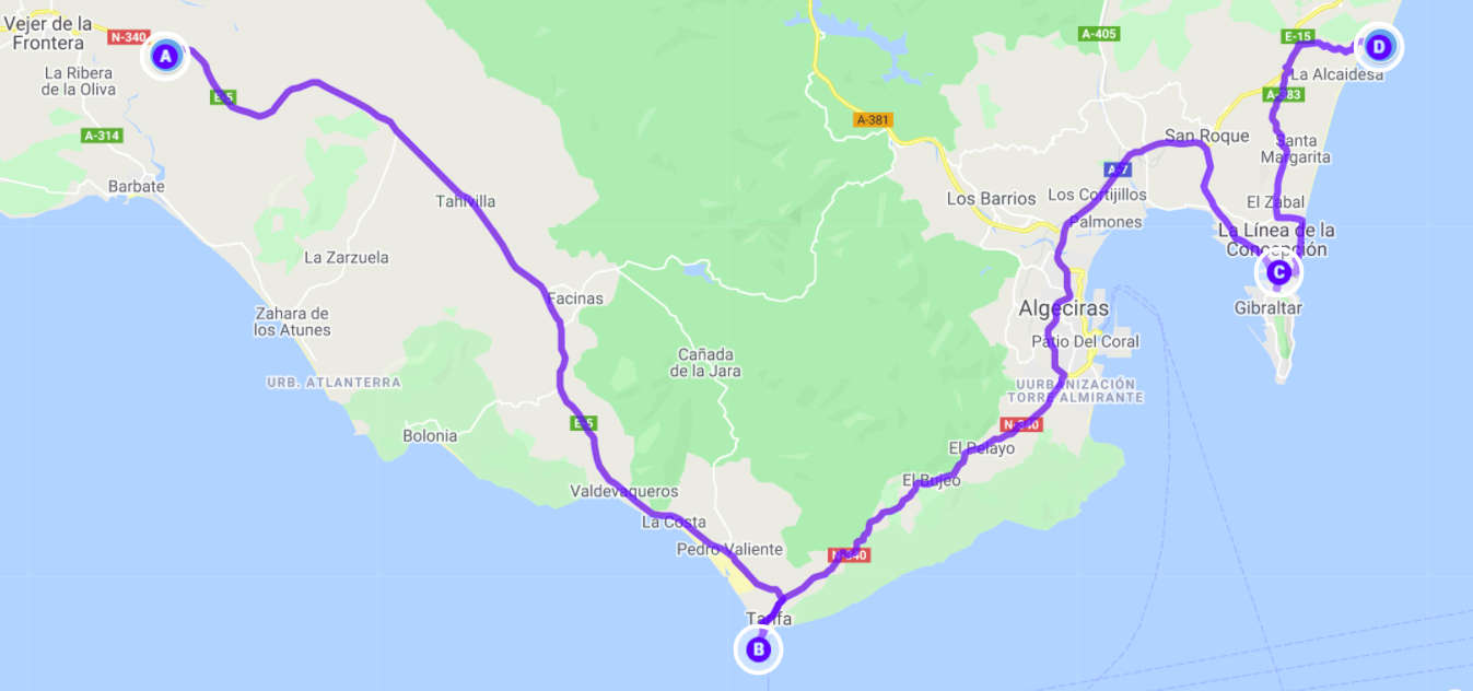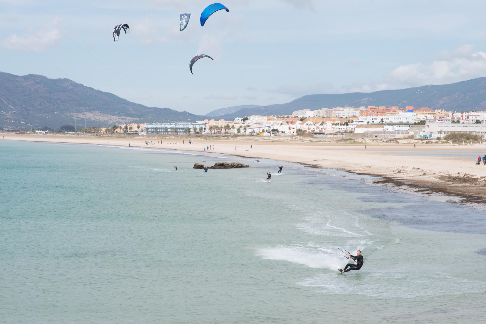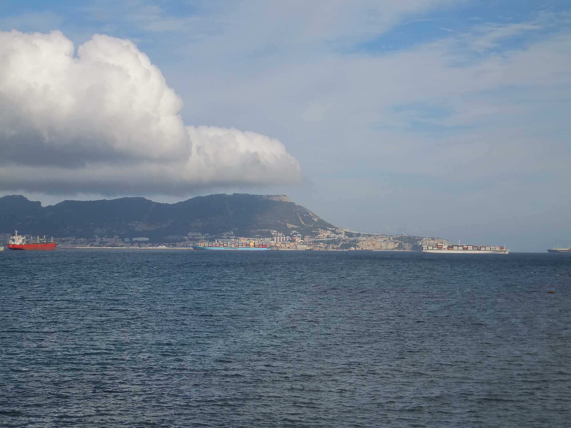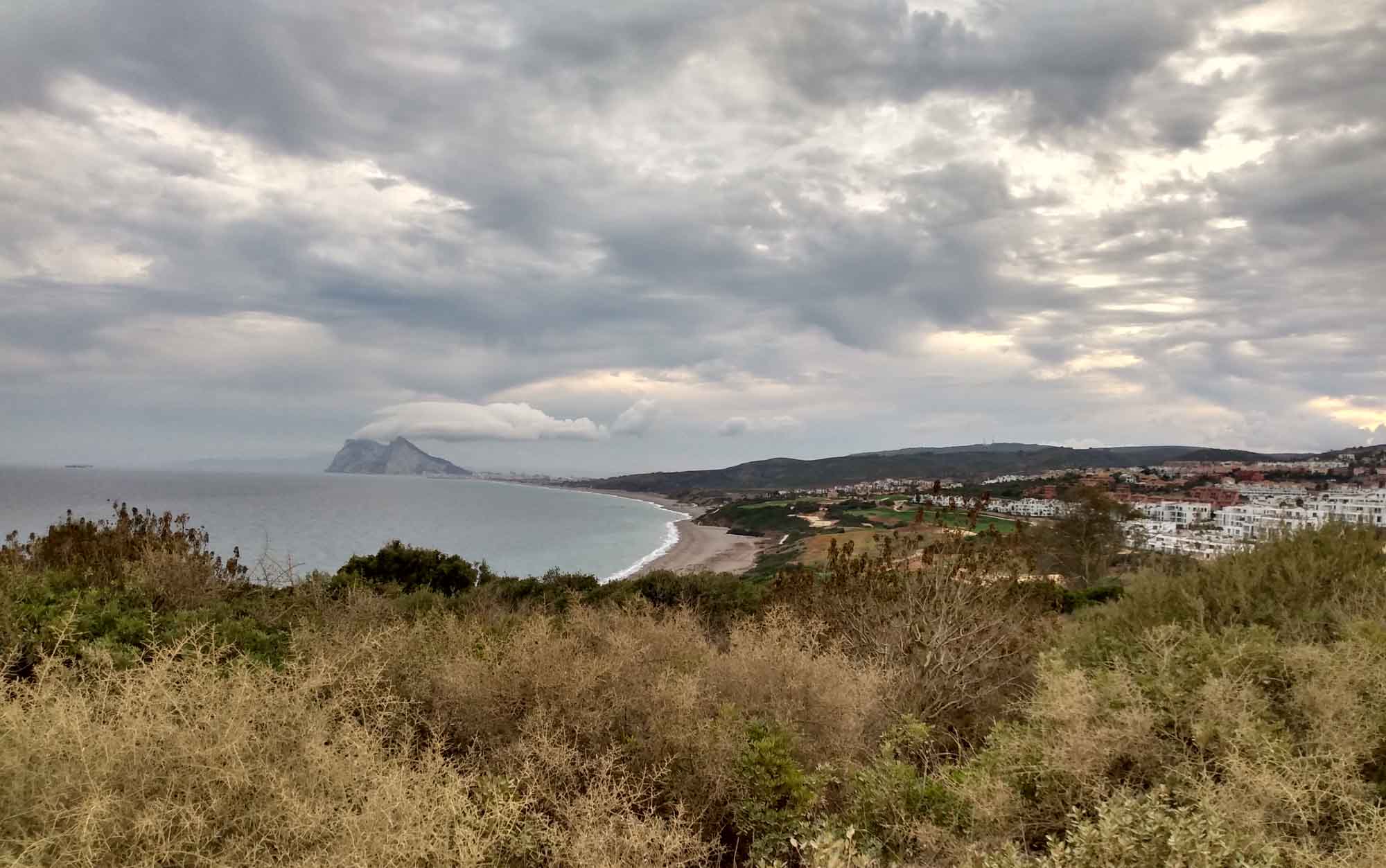 Die Strecke nach Tarifa war sehr schön. Es wurde hügelig und die Landschaft war wieder grün. Je näher wir Tarifa kamen umso windiger wurde es. In Tarifa wehte uns dann auch sehr schön der Sand um die Nase. Wir gingen bis zum Fort, wo der südlichste Punkt von Europa ist. Die letzten Meter waren allerdings durch ein Verbotsschild für Fußgänger versperrt. Sehr schade. Dafür konnten wir die Kitesurfer in der Bucht beobachten, die entlang des Strandes über die Wellen heizten und für die Wendung je nach können 2 bis 15 m in die Luft flogen. Es war beeindruckend zu sehen, wie einige von ihnen dabei scheinbar mühelos aus dem Brett stiegen, es kurz vor der Landung wieder unter die Füße brachten und, als wäre nichts gewesen, sanft aufsetzten und einfach weiterfuhren. Danach fuhren wir über Algeciras, wo wir uns schon einmal den Hafen anschauten, an dem wir demnächst vielleicht nach Marokko übersetzen. Weiter ging es an die Grenze von Gibraltar. Nach Gibraltar selbst fuhren wir nicht, da wir zu viel Alkohol und Zigaretten an Bord hatten und das wollten wir nicht verzollen. Ein bisschen merkwürdig es es allerdings schon, dass diese Halbinsel zu Großbritannien gehören soll und es dort seit dem Austritt Großbritanniens aus der EU wieder Grenz- und Zollkontrollen gibt. Ein kleines Stück weiter nördlich an der Küste entlang, fanden wir einen herrlichen Platz direkt am Strand mit Blick auf Gibraltar. Der Weg dorthin führte über eine sehr luxuriöse Golfanlage, wo der Zugang sogar durch einen Wachposten geregelt wurde. Dieser winkte uns aber einfach durch und wir fragten nicht weiter nach. So konnten wir mal wieder beim Schlafen das Meeresrauschen hören.