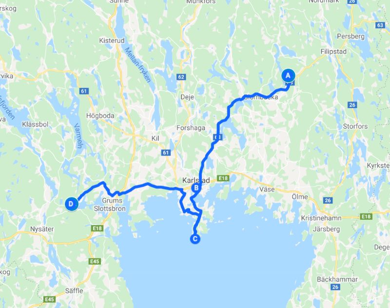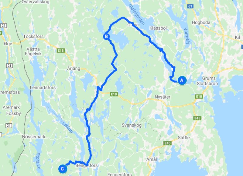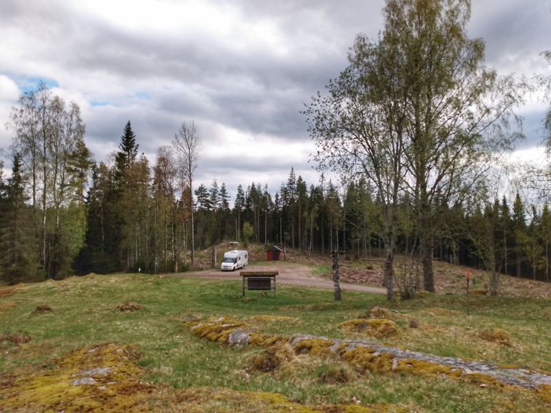 Auf unserer Fahrt nach Hammarö machten wir einen kurzen Halt in Karlstad, wo wir uns Schwedens älteste Steinbrücke ansahen. Eine beachtliche Konstruktion, wenn man bedenkt, dass sie seit über 400 Jahren dort steht. Auf der Halbinsel Hammarö, am nördlichen Ende des Vänernsees, fuhren wir an die Südspitze, um dort spazieren zu gehen. Das Land endet hier mit glatten Felsen, von denen aus man im Sommer bequem baden gehen kann. Es gibt viele Wege, die hier ans Wasser führen und an jedem findet man einen kleinen Grillplatz und Tische dazu. Das Feuerholz gibt es gratis auf dem Weg dahin. In Schweden wird halt viel und oft gegrillt. An der Badestelle, die wir uns auf Hammarö zur Übernachtung ausgesucht hatten, standen bereits einige Wohnmobile und wir zogen es vor weiter zu fahren. Am Ende landeten wir irgendwo im Nirgendwo an einer kleinen Straße, die an einem kleinen See vorbeiführte.